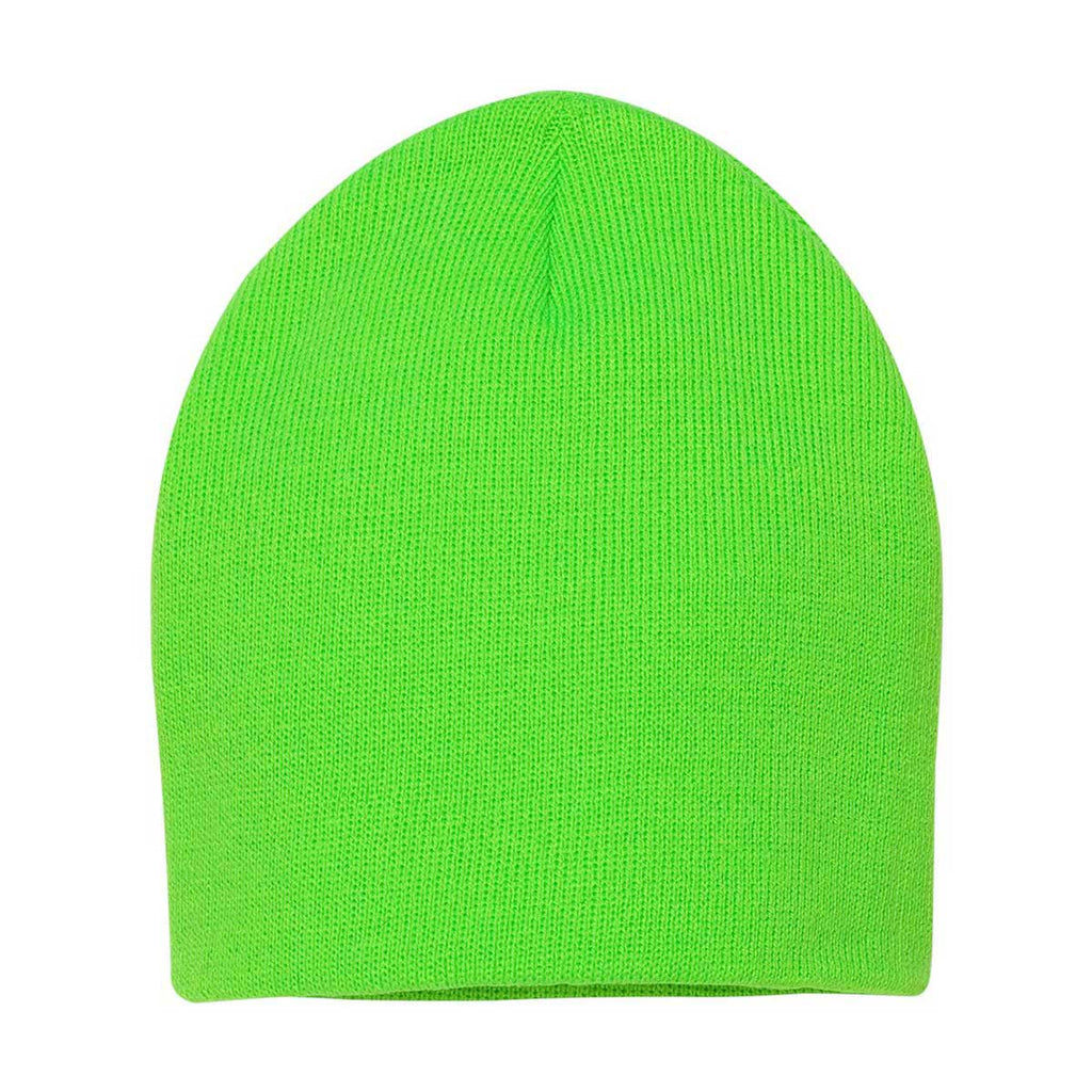Keep it basic with a custom Sportsman Neon Green 8" Knit Beanie in a huge variety of colors. Made of 100% acrylic knit, this beanie is a one size fits most design that can be embroidered with your company logo or design of choice. Choose a safety yellow as headwear for those who have to be outdoors in dangerous areas or a basic black to allow your corporate embroidery to stand out when it is worn to sporting events or as part of employee apparel. Create a look that everyone will want to mimic as you bring the beanie to the fashion front.Highlights