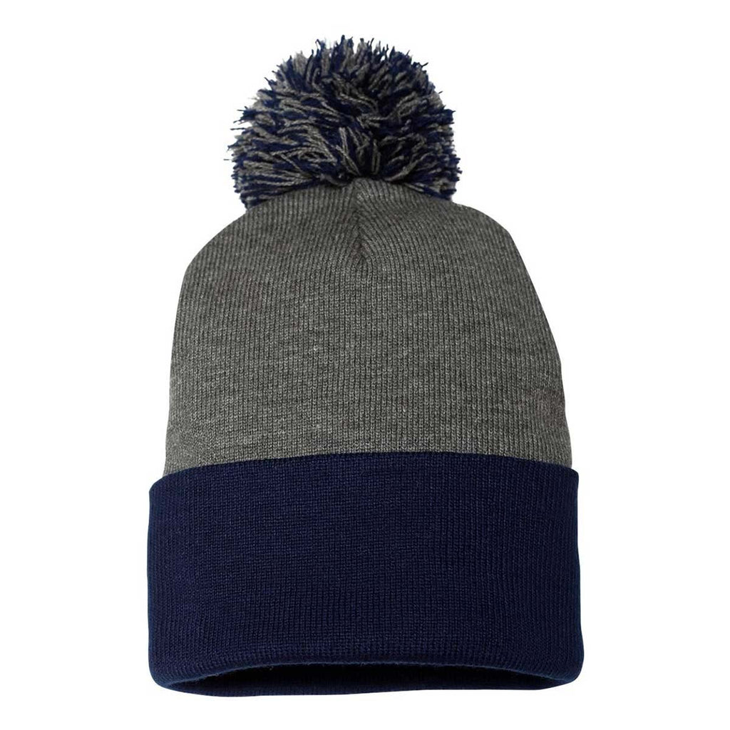 Sportsman Dark Heather Grey/Navy Pom-Pom 12" Knit Beanie