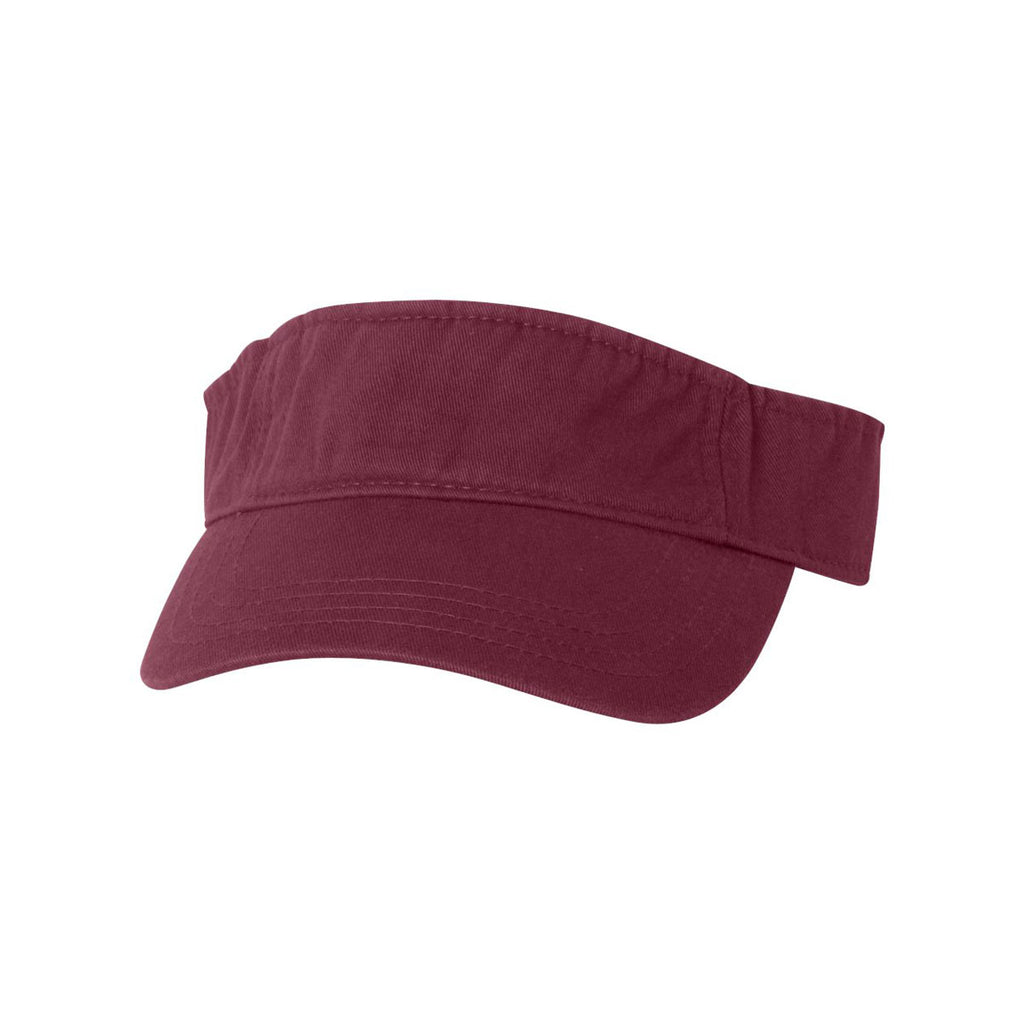 Bio-washed chino twill cotton defines the chic design of the custom logoed Valucap Maroon Bio-Washed Visor. Super smooth cotton keeps you feeling energized all day long. The curved visor allows you to adjust the look of the cap to account for different sun angles during the course of company softball games. Attach the hook and loop closure to achieve the most comfortable fit at corporate picnics and when you work outdoors at home. Add your company logo on the large imprint area to get the word out about your products and services at business conferences.Highlights