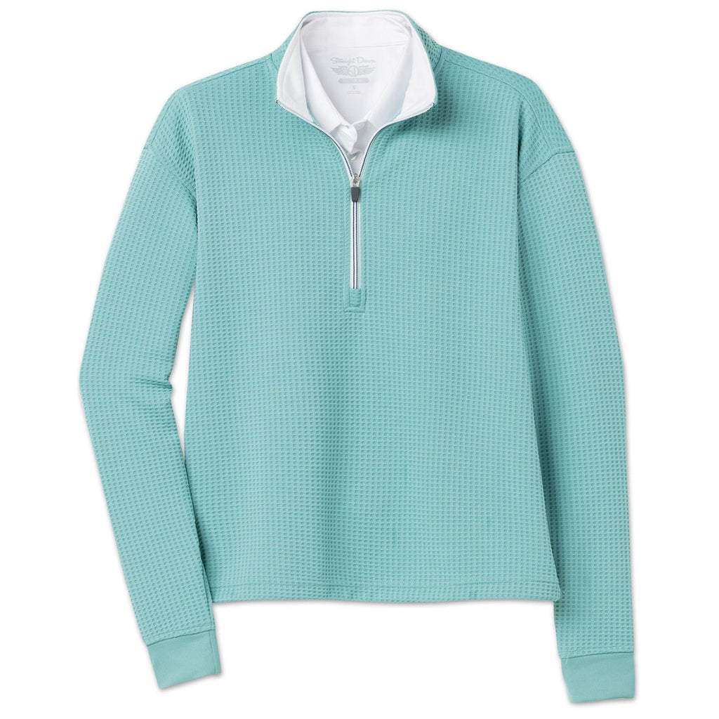 Designed with comfort and movement in mind, the Straight Down Women's Sea Green Opal Half Zip fits seamlessly into any custom apparel collection. Lightweight and breathable, it layers well for travel or cool-weather outings. The relaxed fit and mock neck add casual sophistication, making it a go-to for active or branded wear.