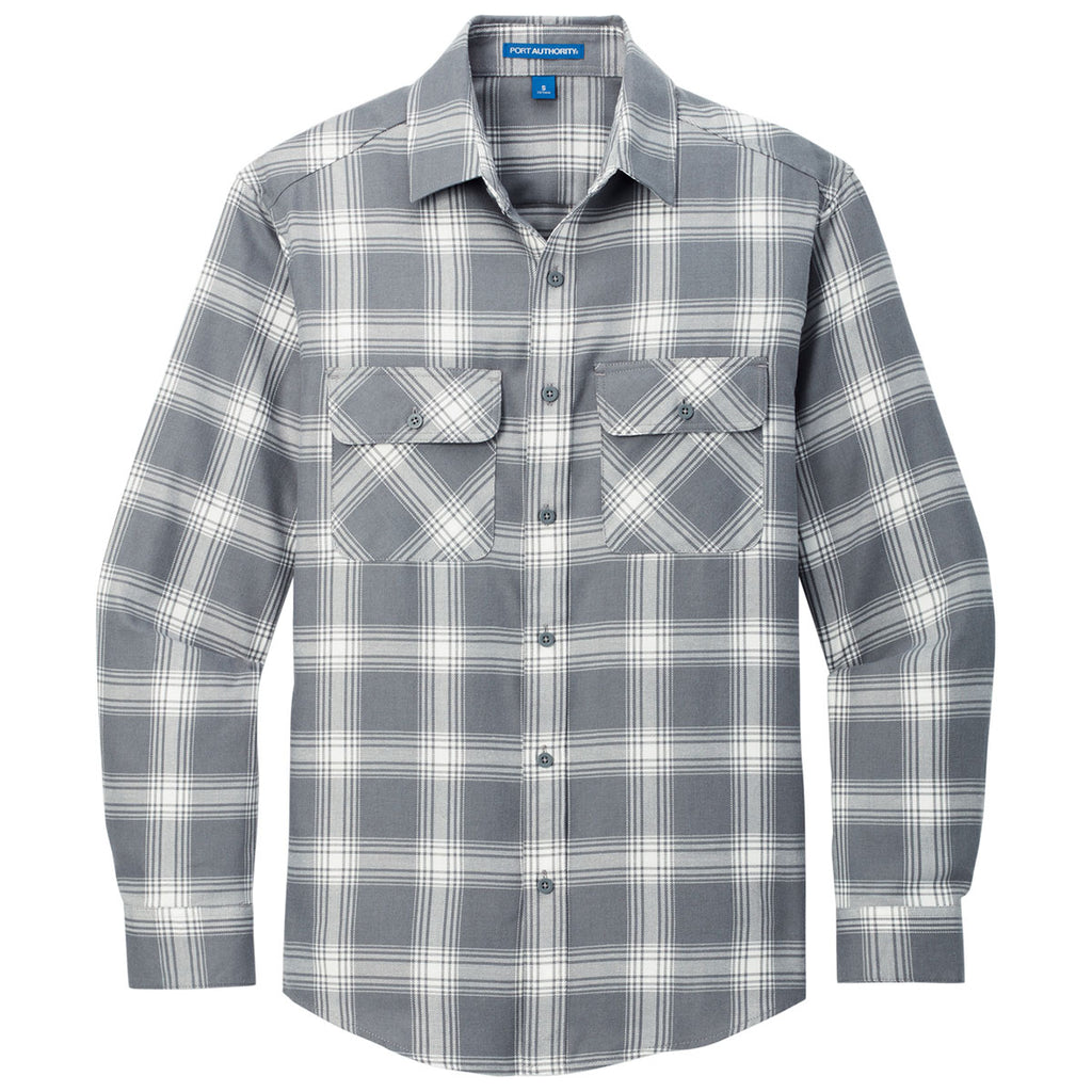 Port Authority Men's Grey/Cream Open Plaid Plaid Flannel Shirt