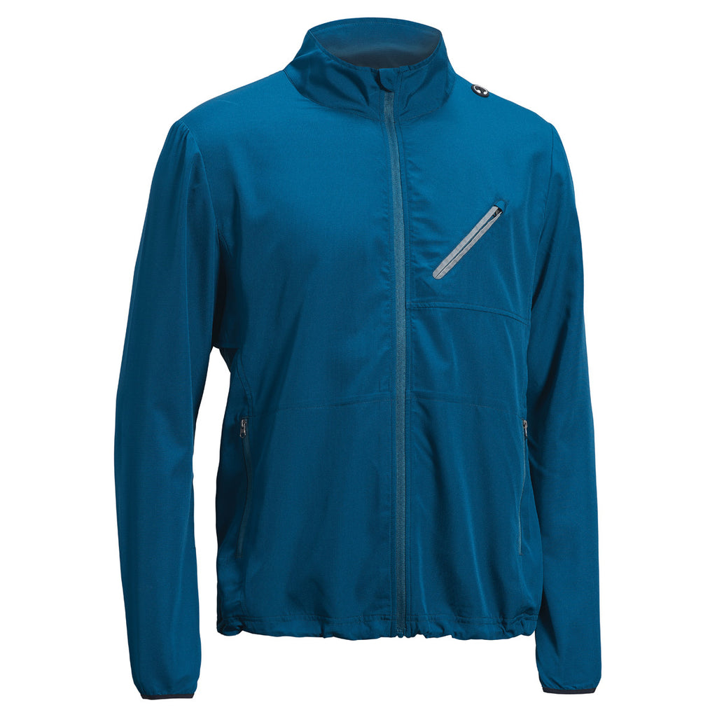 Keep him looking as great as he feels pre- and post-workout rituals courtesy of Expert Men's Emerald Run Away Jacket. Sporty, streamlined silhouette and lightweight fabric add to its comfort. A dropped back hem provides protection against cold weather. Other features include Headphone loophole, reflective detail, hook tape closure, elastic sleeve hem, and antimicrobial properties. Crafted from lightweight microfiber poly woven. Get it with your company or brand's custom logo print to bolster your brand visibility. A staple work-to-workout piece for corporate merchandise, sports events, athletic and active lifestyle gifts.
