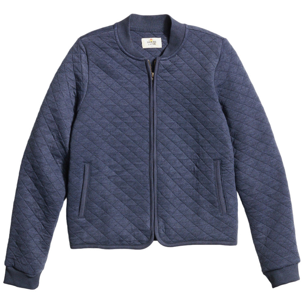 Add a custom design to the Marine Layer Women’s Navy Corbet Quilted Bomber for a high-end look at a great price. Perfect for the office or a night on the town, this bomber is a fashionable upgrade on a classic. The full front zip design makes it easy to layer.