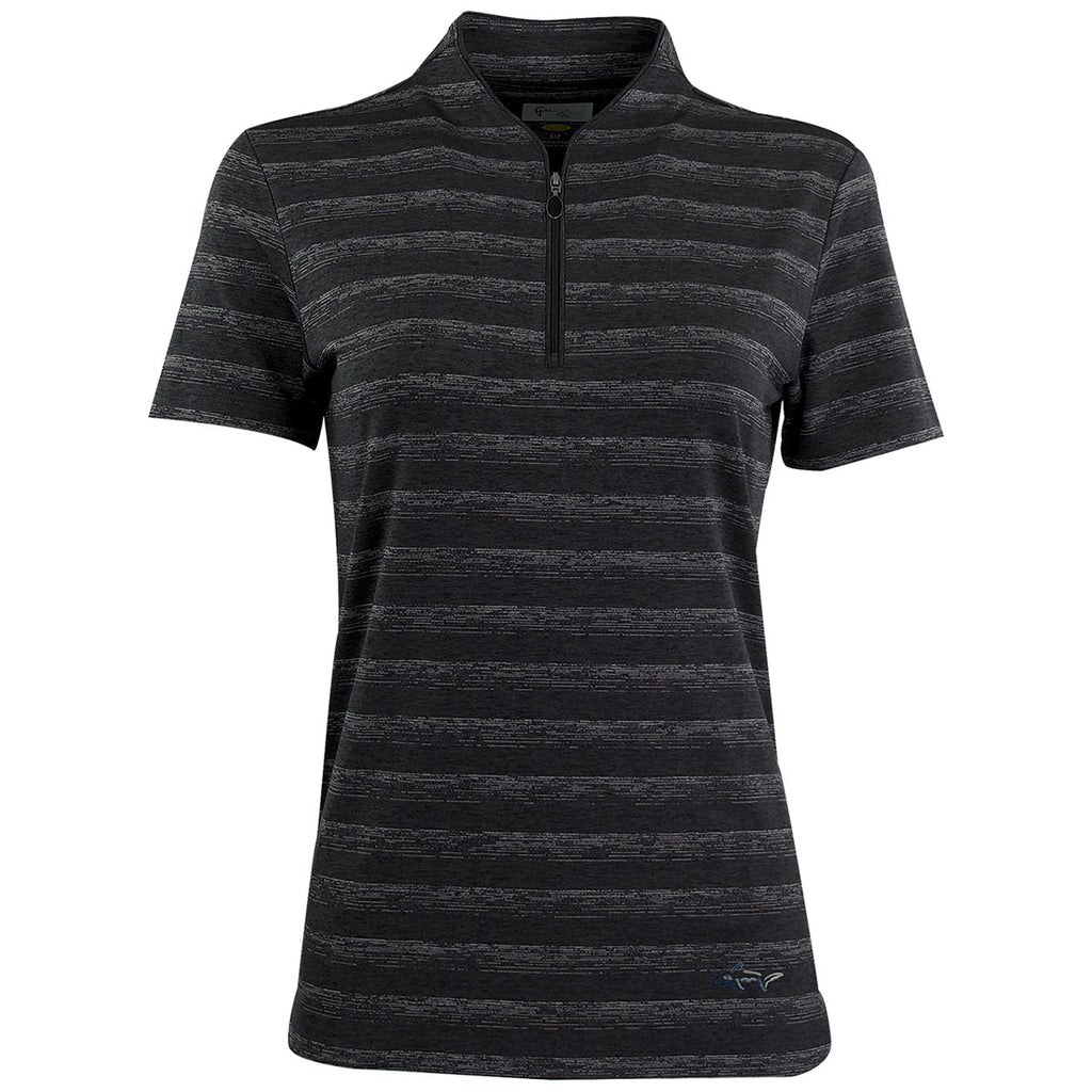 Greg Norman Women's Black Heather LAB Stripe Polo
