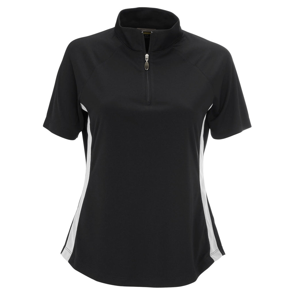 Greg Norman Women's Black/White Mesh Panels Play Dry ML75 Racer Mock Neck Polo