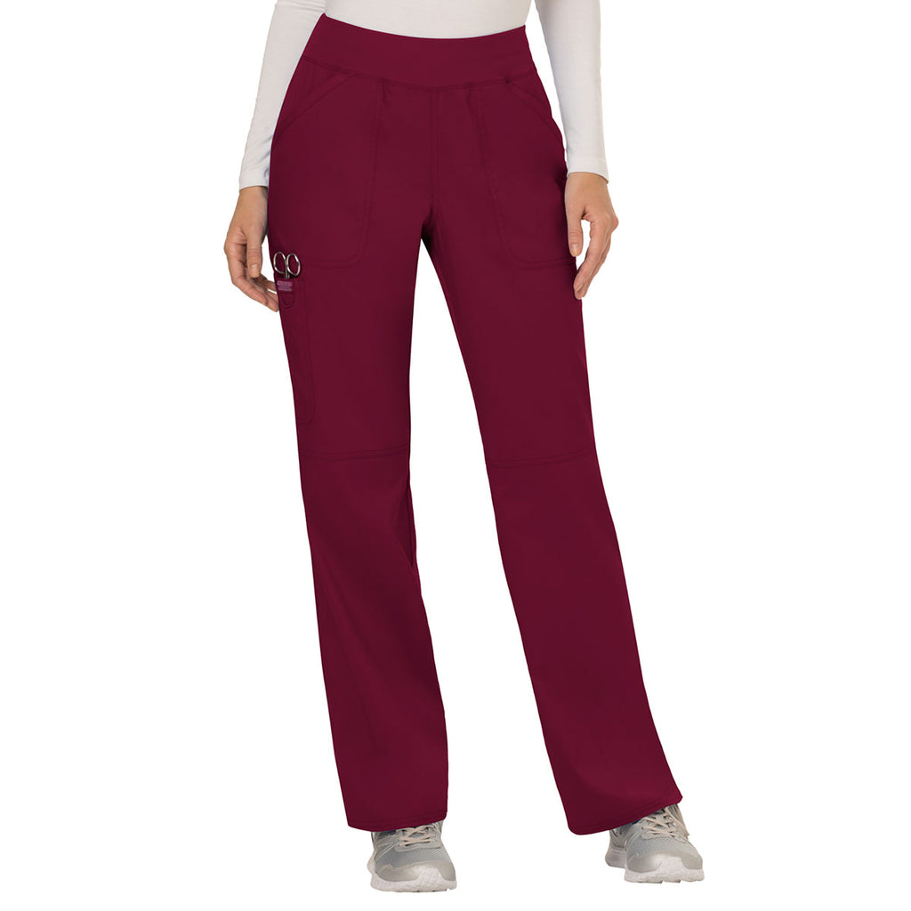 Cherokee Women's Wine Workwear Revolution Mid Rise Pull-on Cargo Pant