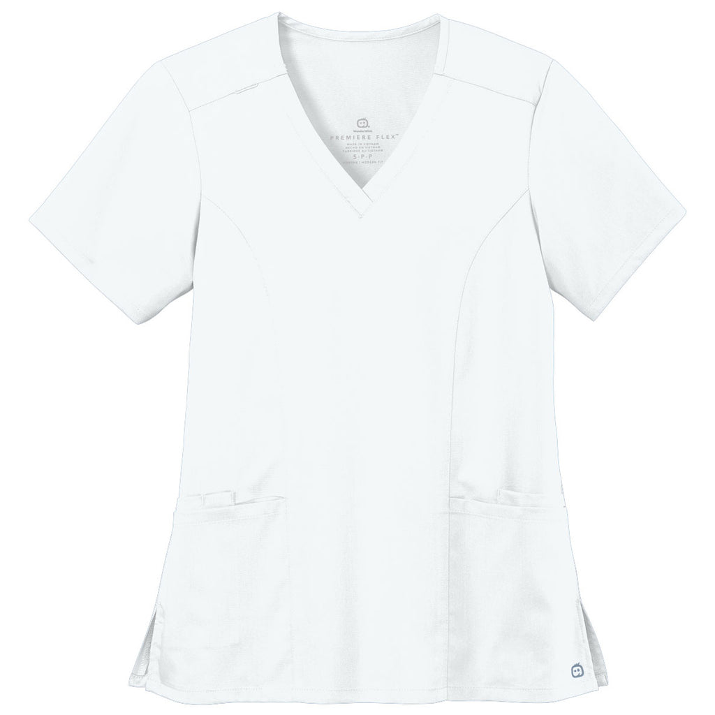 WonderWink Women's White Premiere Flex V-Neck Top