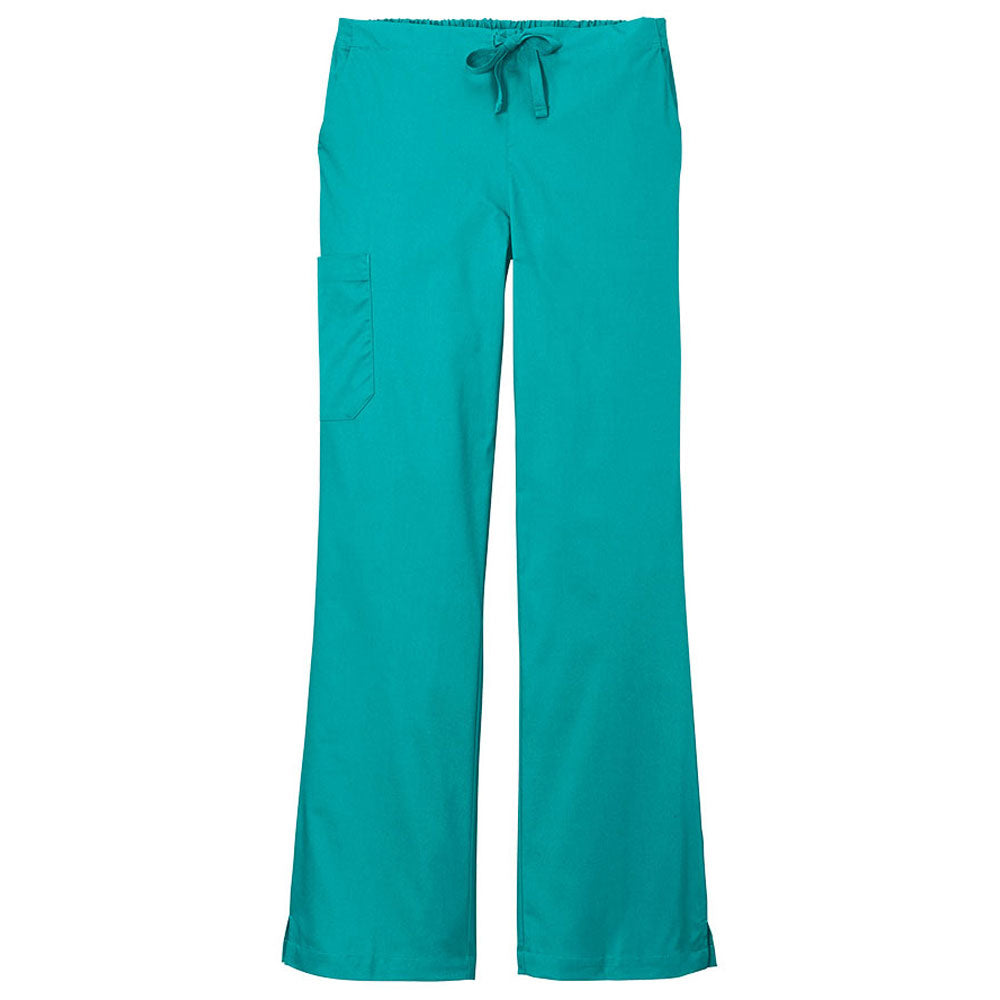 A slightly wider leg makes the WonderWink Women's Teal Blue WorkFlex Flare Leg Cargo Pant a comfortable option for the ladies on your team. Designed for healthcare professionals, they're made from a mechanical stretch fabric that is exceptionally easy to move in. Add your company's custom logo to create a stylish uniform look.