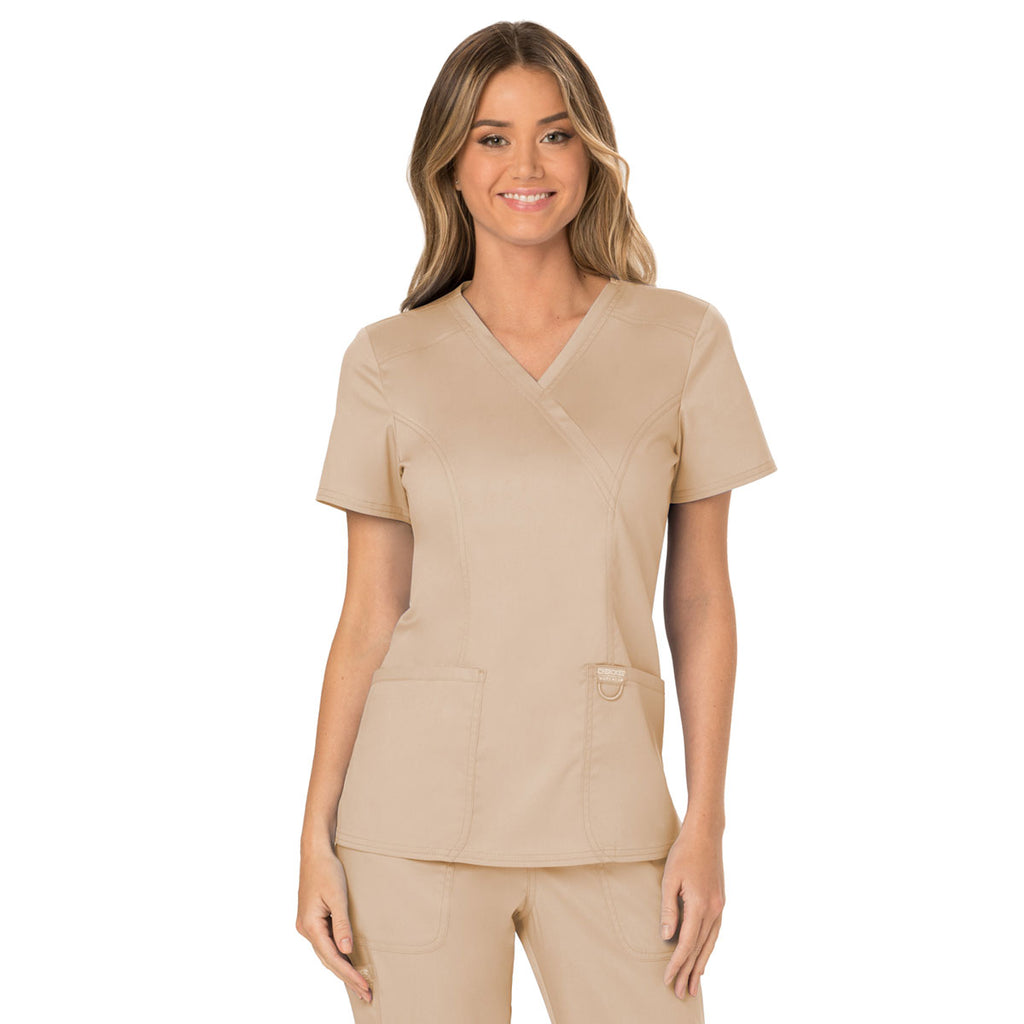 Cherokee Women's Khaki Workwear Revolution Mock Wrap Top