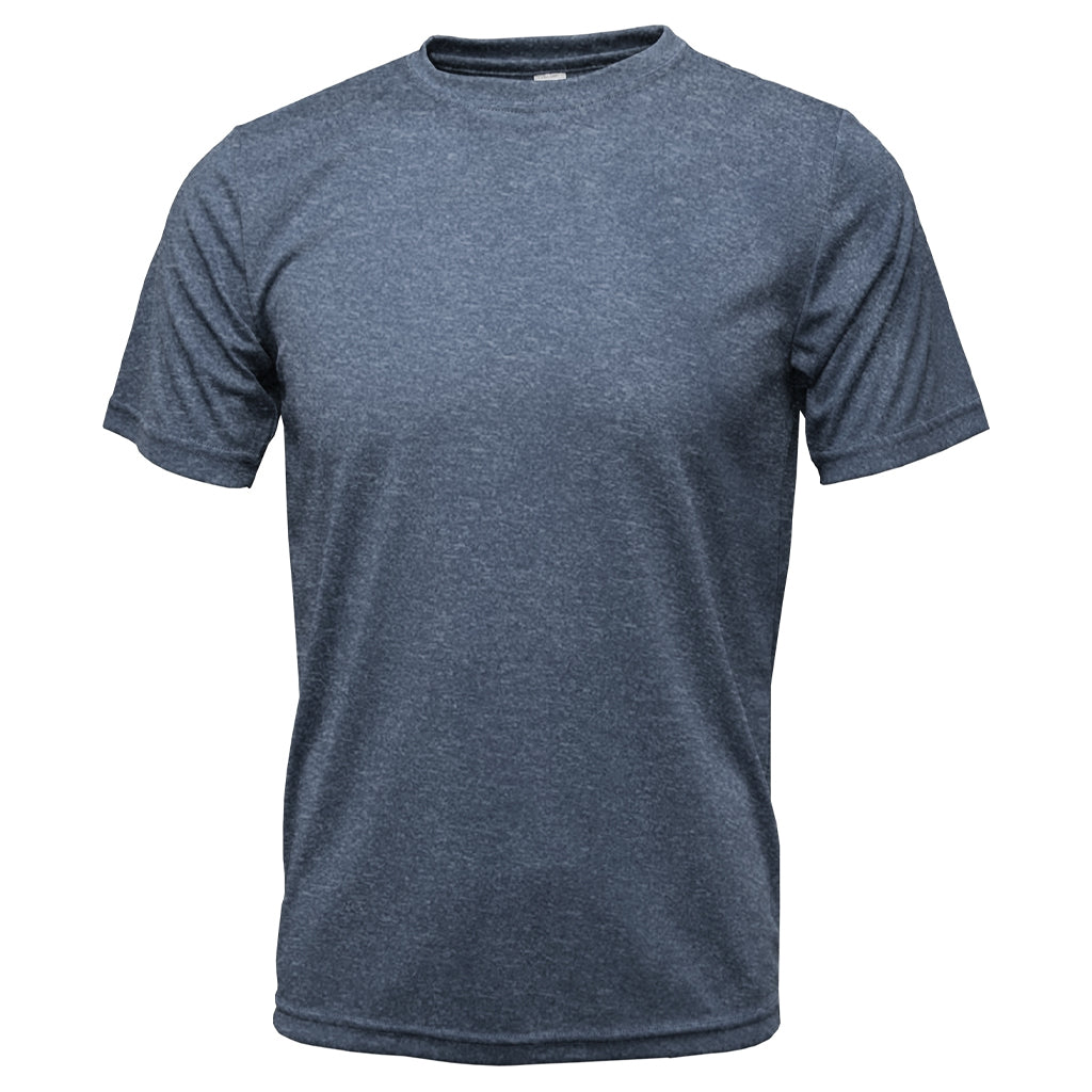 When you need a special color for the background of your customer logo, select the BAW Men's Heather Navy Xtreme Tek Heather T-Shirt that is available in many shades! One of these will compliment your company or team's colors. This is a fabulous choice when you want people championing your product or services. Maybe you have a company store where employees can purchase tees in the color and size of their choice. Then again perhaps you are having a corporate event where you want to give out T-shirts to those who attend. Search no further! This crew neck polyester tee is a very wise choice.Corresponding Women's Style: BAW Women's Heather Navy Xtreme Tek Heather T-Shirt
