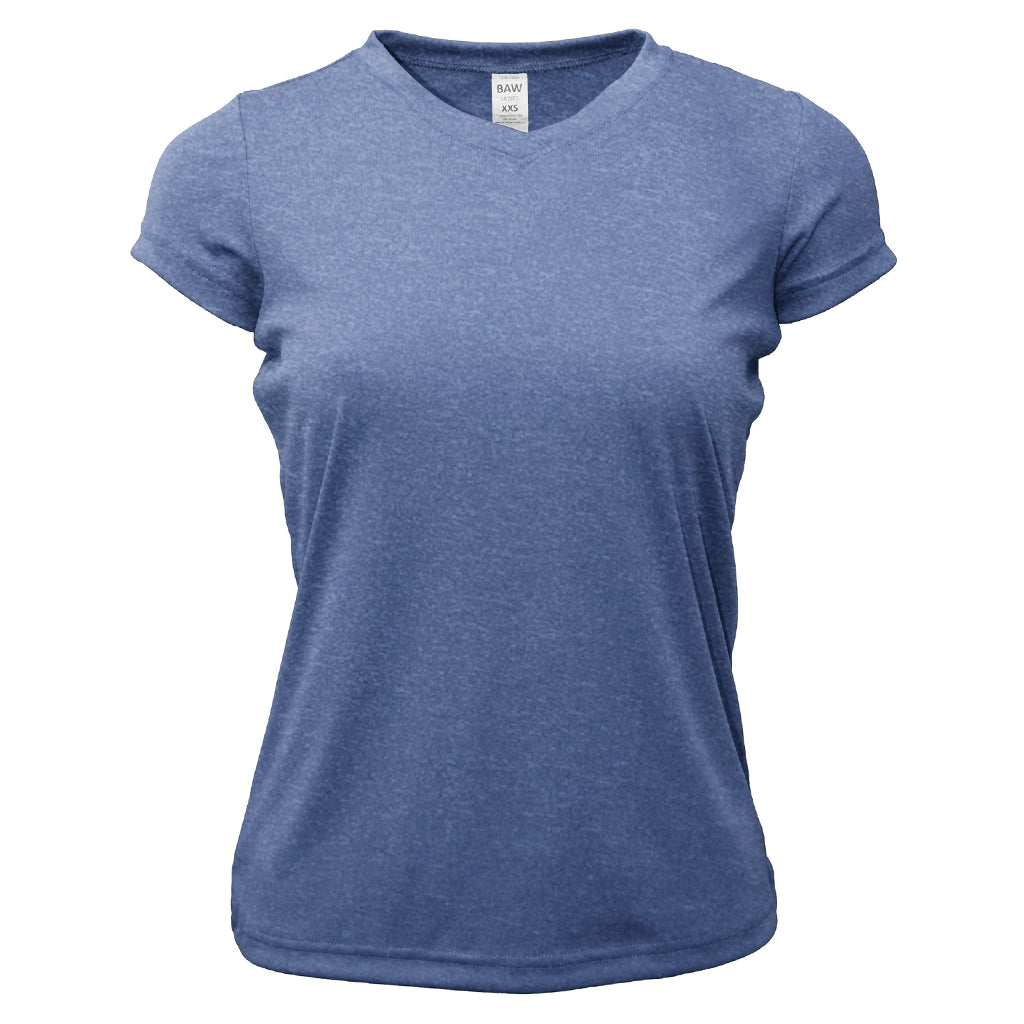 No one could accuse you of not selecting the right color of women's T-shirt for your company sponsored promotion! The BAW Women's Heather Royal Xtreme Tek Heather T-Shirt comes in a variety different shades. Just imagine your custom logo on the front of each one. Your promotion could be the gold at the end of the proverbial rainbow. This ladies' tee is available in sizes 2XS to 3X, and the material is so comfortable and breathable that recipients will wear it every chance they get. This is a tee that will not shrink and also offers UV protection. Whether you're having an anniversary celebration or gift with purchase, you just can't go wrong!Corresponding Men's Style: BAW Men's Heather Royal Xtreme Tek Heather T-Shirt