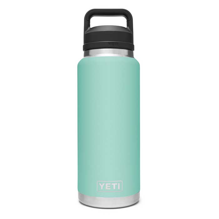 Need logoed event gifts? Check out the YETI Seafoam 36 oz. Chug Cap Bottle - restyle the drinkware with your company logo or name to add branding, and you'll have an instant marketing freebie for your recruiting events, trade shows and the like. Specially designed for scorching hot days and trips, the YETI Chug Cap keeps you hydrated with an icy cold drink that stays cool inside the bottle's double-wall, insulated construction.
