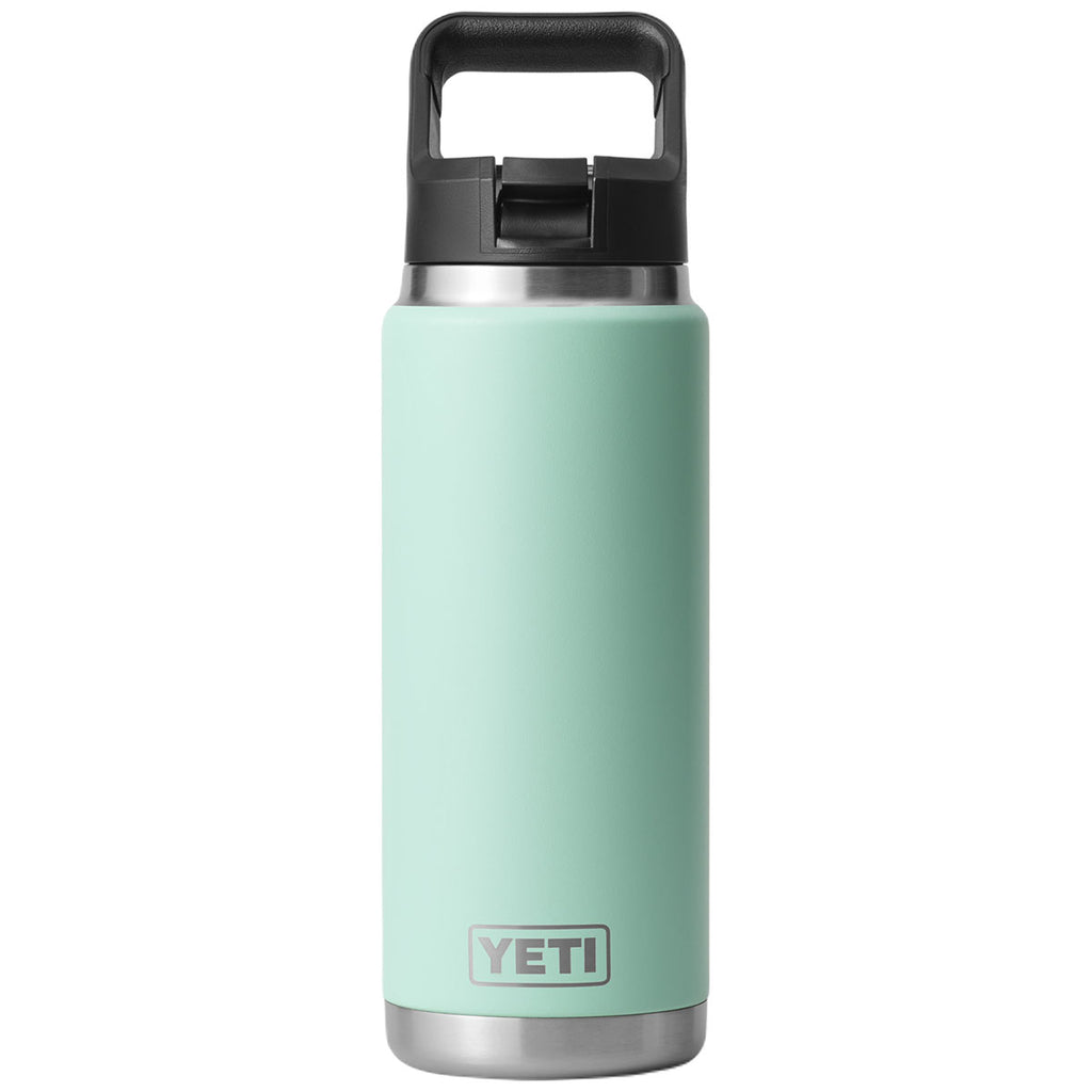 If keeping your team hydrated is essential, add your company's custom logo or design to the YETI Seafoam Rambler 26 oz Water Bottle W/Straw Cap. This sleek accessory features a sleek, stylish design that everyone will want to show off. Superior insulation means it keeps beverages cold or hot all day long.