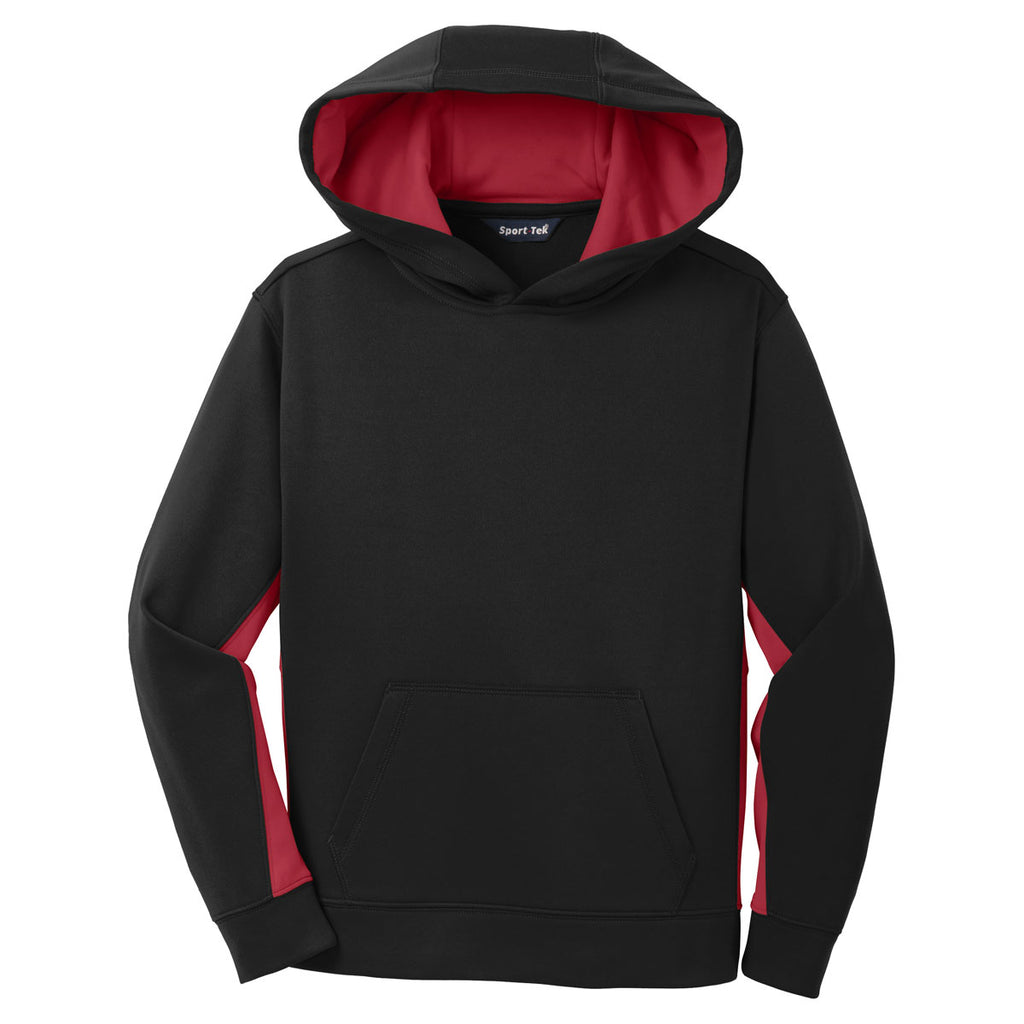 When the mercury goes down, your layering needs to go up. You know what we mean by layering, right? Take the Sport-Tek Youth Black/Deep Red Sport-Wick Fleece Colorblock Hooded Pullover. This is a comfortable and durable layering item that you can use to gift your employees with warm and fashionable clothes to wear around the workplace. Just add your custom logo to the front and you've created something branded specifically to your company.Highlights