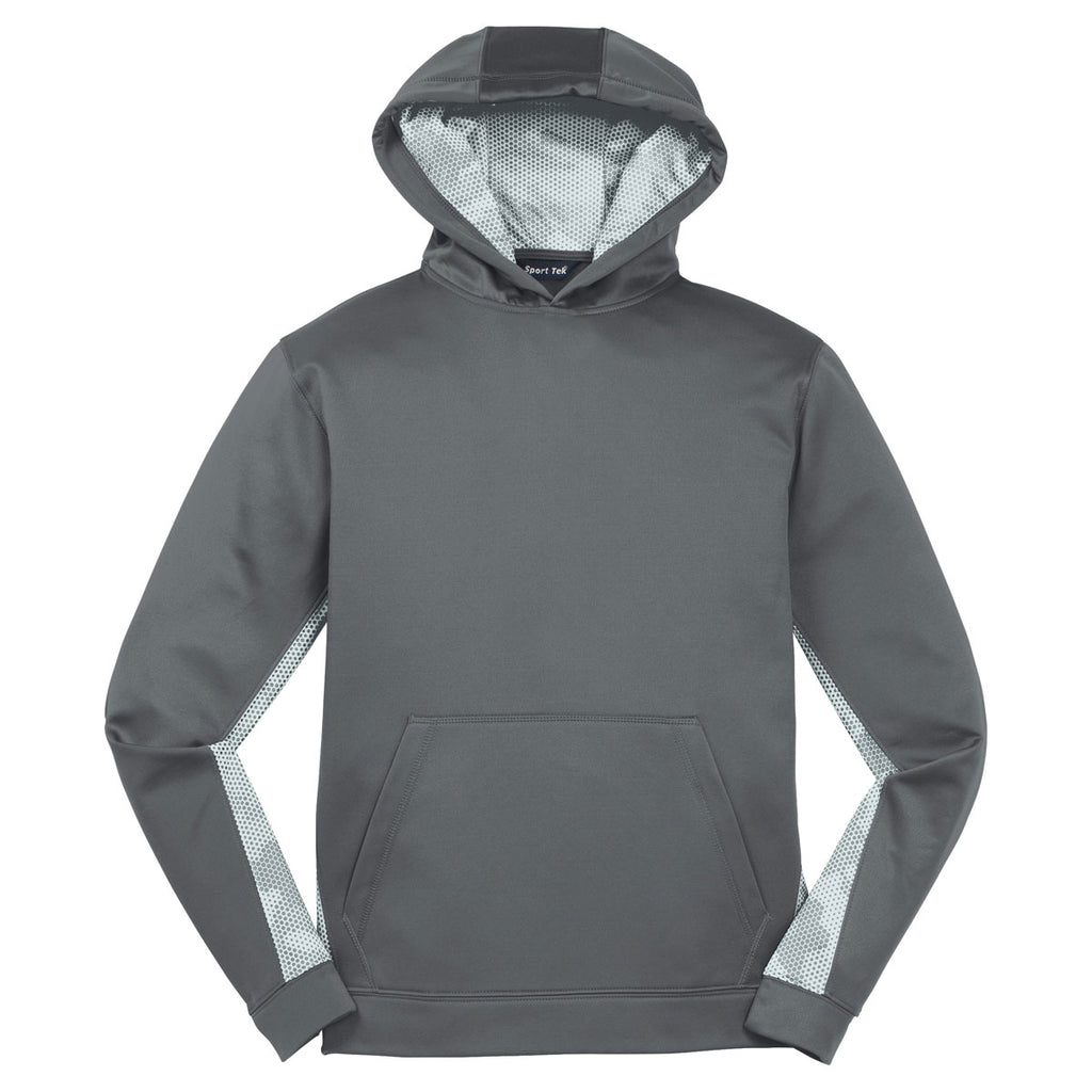 When the weather gets tough, so must you. That's the idea behind this Sport-Tek Youth Dark Smoke Grey/White Sport-Wick CamoHex Fleece Colorblock Hooded Pullover. Add your own custom embroidery to make this a piece of corporate apparel that anyone can enjoy. Layering is ideally suited to serve as your canvas, and this is an item that will work for you in the elements, not against.