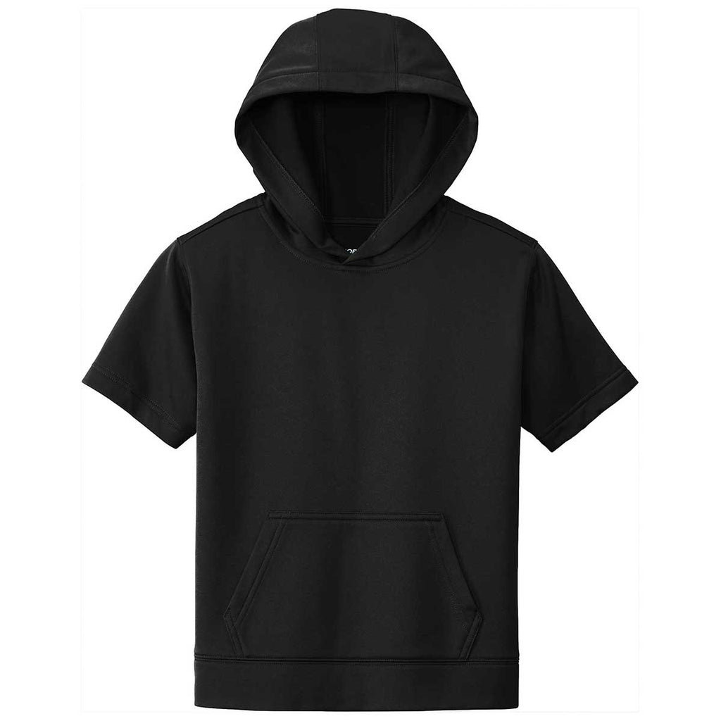 Sport-Tek Youth Black Sport-Wick Fleece Short Sleeve Pullover Hoodie