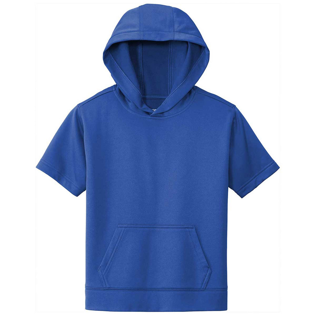 Hoodies are a staple for most kids, try a custom logo Sport-Tek Youth True Royal Sport-Wick Fleece Short Sleeve Pullover Hoodie. Add a heat transfer logo of your choice to use for team events as part of the uniform or warmup gear. Made of 100% polyester, this anti-static hoodie comes in a variety of color and size combinations with a three panel hood and front pouch pockets for all the treasures a child collects during the day. Add a company logo to use these for customers or as employee gifts to those who have children. Trend right sleeves allow for maximum mobility in this moisture wicking hoodie that will be an instant hit.Highlights