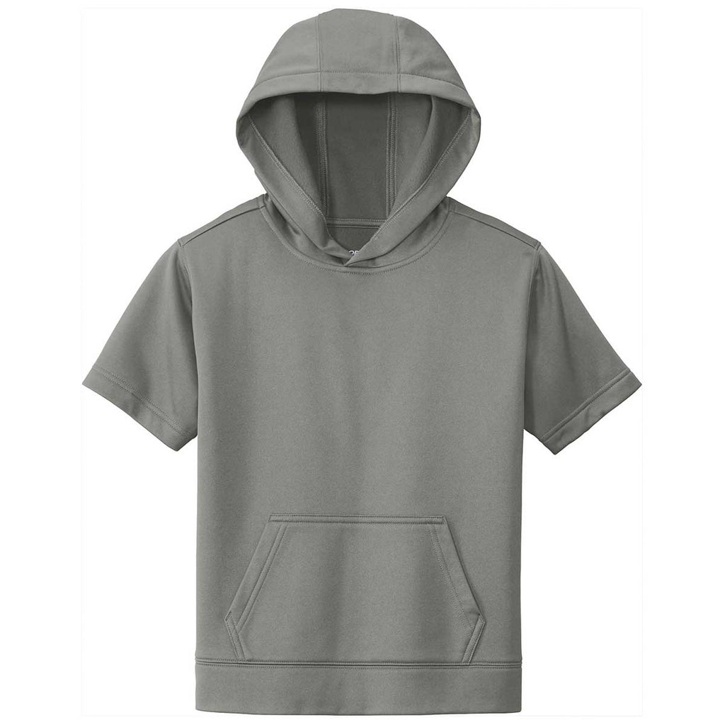 Hoodies are a staple for most kids, try a custom logo Sport-Tek Youth Dark Smoke Grey Sport-Wick Fleece Short Sleeve Pullover Hoodie. Add a heat transfer logo of your choice to use for team events as part of the uniform or warmup gear. Made of 100% polyester, this anti-static hoodie comes in a variety of color and size combinations with a three panel hood and front pouch pockets for all the treasures a child collects during the day. Add a company logo to use these for customers or as employee gifts to those who have children. Trend right sleeves allow for maximum mobility in this moisture wicking hoodie that will be an instant hit.Highlights
