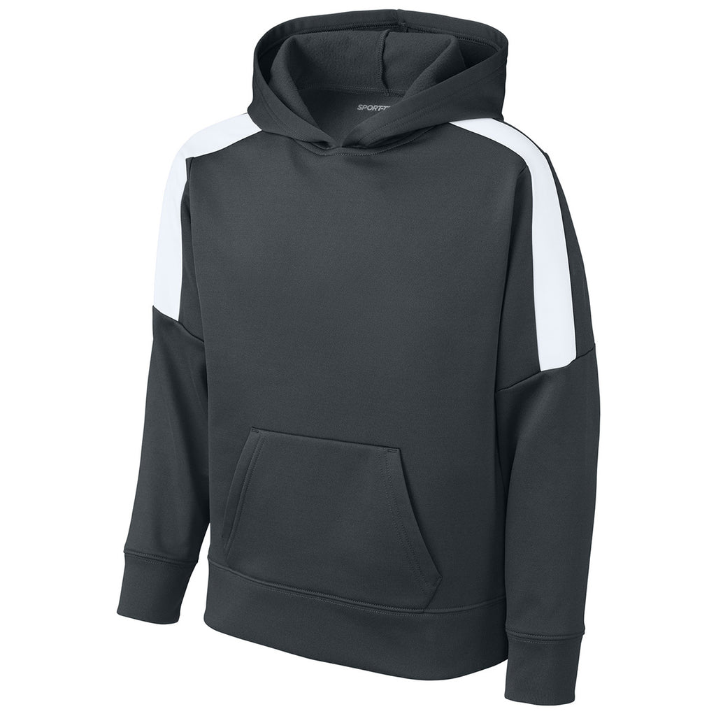 Sport-Tek Youth Iron Grey/ White Sport-Wick Fleece United Pullover Hoodie with a custom logo is the perfect choice for creating a school look that everyone can enjoy. The simple hoodie with a front pouch pocket can be worn alone or layered as needed for sports, class, or organized events. Place an order right away.Corresponding Men's Style: Sport-Tek Men's Iron Grey/ White Sport-Wick Fleece United Pullover Hoodie