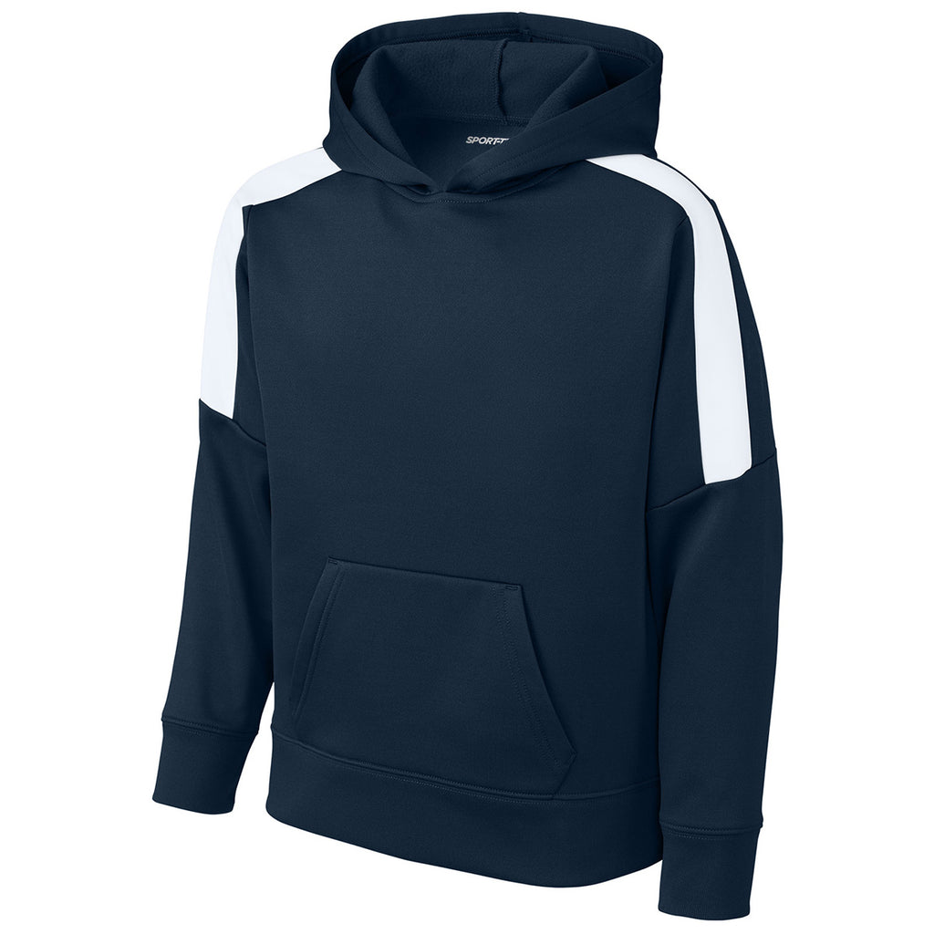 Sport-Tek Youth Navy/ White Sport-Wick Fleece United Pullover Hoodie with a custom logo is the perfect choice for creating a school look that everyone can enjoy. The simple hoodie with a front pouch pocket can be worn alone or layered as needed for sports, class, or organized events. Place an order right away.Corresponding Men's Style: Sport-Tek Men's Navy/ White Sport-Wick Fleece United Pullover Hoodie