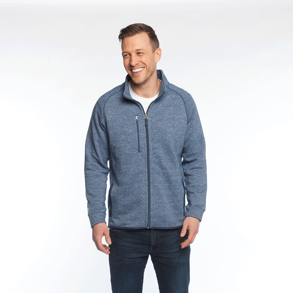 As soon as the temperatures start to drop the Zusa Men's True Navy Heather Midtown Fleece Full-Zip Sweatshirt is your best friend. It's the personalized jacket you keep on the back of your chair at work for when there's a chill in the air. These fleeces go with everything in your closet too, especially when you add your custom embroidered company logo. If that wasn't enough, these sustainable fleece full zips are made using 9 recycled plastic water bottles per jacket. What more could you ask for in men's corporate outerwear?