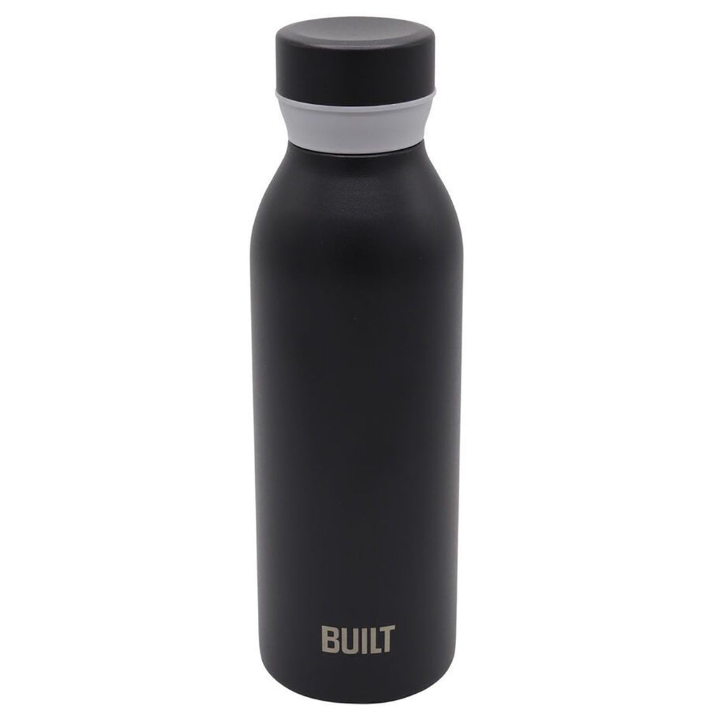 The Built Black 18 oz Cascade Water Bottle is crafted with 18/8 double-wall stainless steel construction. Features a threaded lid that easily opens and closes and creates a leak-proof vacuum-seal to prevent spilling. A silicone grip on the lid provides a comfortable hold as well as helps to open and close the lid more easily. The Cascade bottle fits in a standard size cup holder.