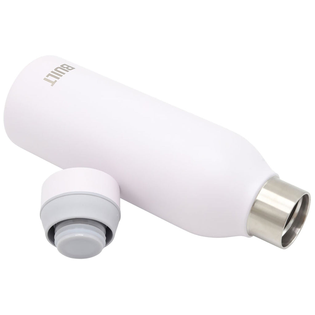The Built White 18 oz Cascade Water Bottle is crafted with 18/8 double-wall stainless steel construction. Features a threaded lid that easily opens and closes and creates a leak-proof vacuum-seal to prevent spilling. A silicone grip on the lid provides a comfortable hold as well as helps to open and close the lid more easily. The Cascade bottle fits in a standard size cup holder.