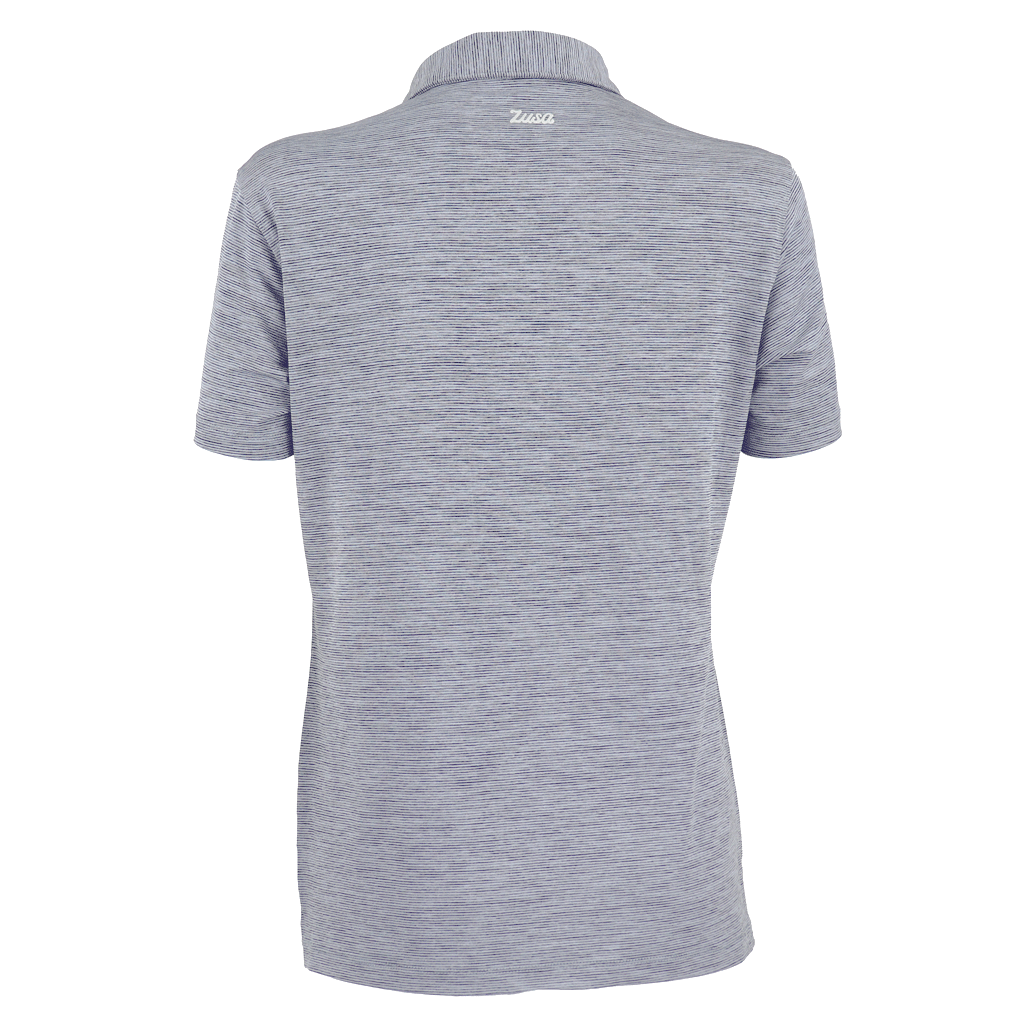 Corresponding Style: Zusa Men's White/Steel Heather Stripe Polo