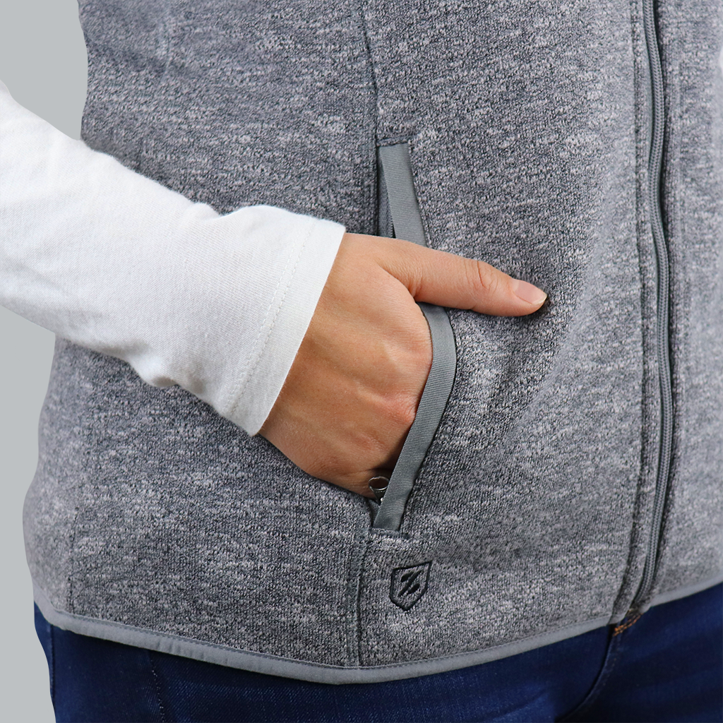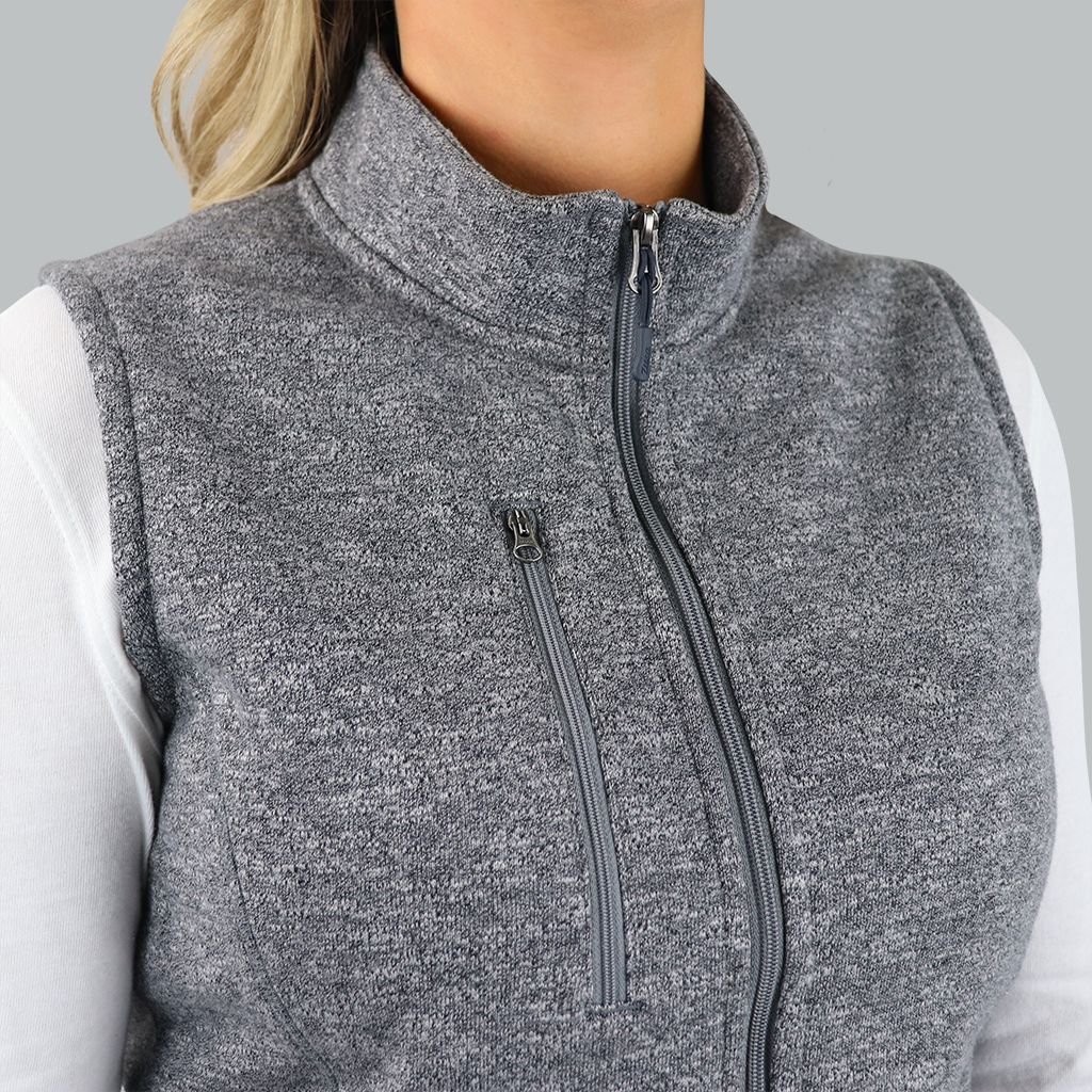 It's casual Friday and there's a crisp chill in the air. What are you grabbing out of your closet in the morning? The Zusa Women's Light Grey Heather Midtown Fleece Vest fits the bill perfectly. These Light Grey Heather vests look amazing over a dress shirt and are made to show off your custom embroidered company logo, making them the perfect corporate apparel for women. These custom vests are even sustainable - each one is made using 6 recycled plastic bottles! Comfort, versatility, and sustainability. What more could you ask for?